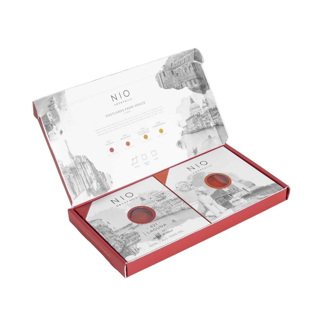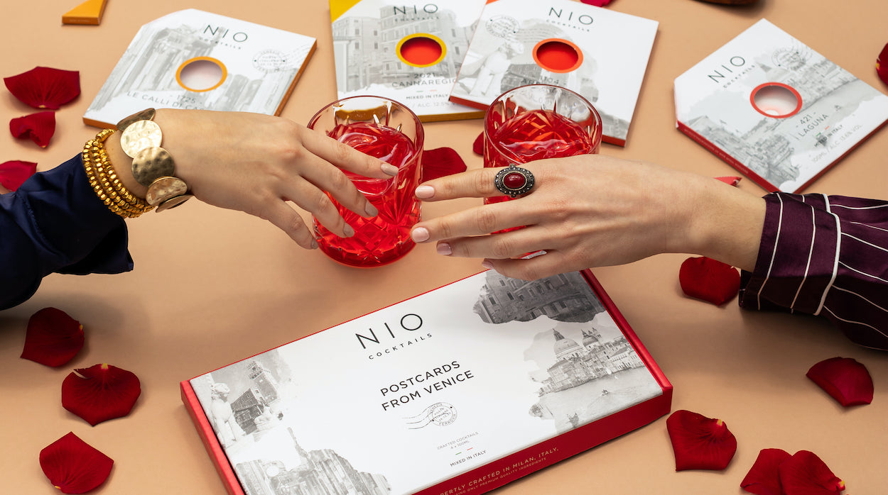 NIO Cărți poștale din Veneția, o colecție de patru cocktailuri în ediție limitată, fiecare creat de Patrick Pistolesi, te conduce astfel înapoi în timp, în paşi de vals, în acest emblematic oraș romantic. Cufundă-te în cultura venețiană în timp ce le deguşti, și descoperă poveștile, deoarece fiecare cocktail este ca o carte poștală de la Patrick pentru tine.